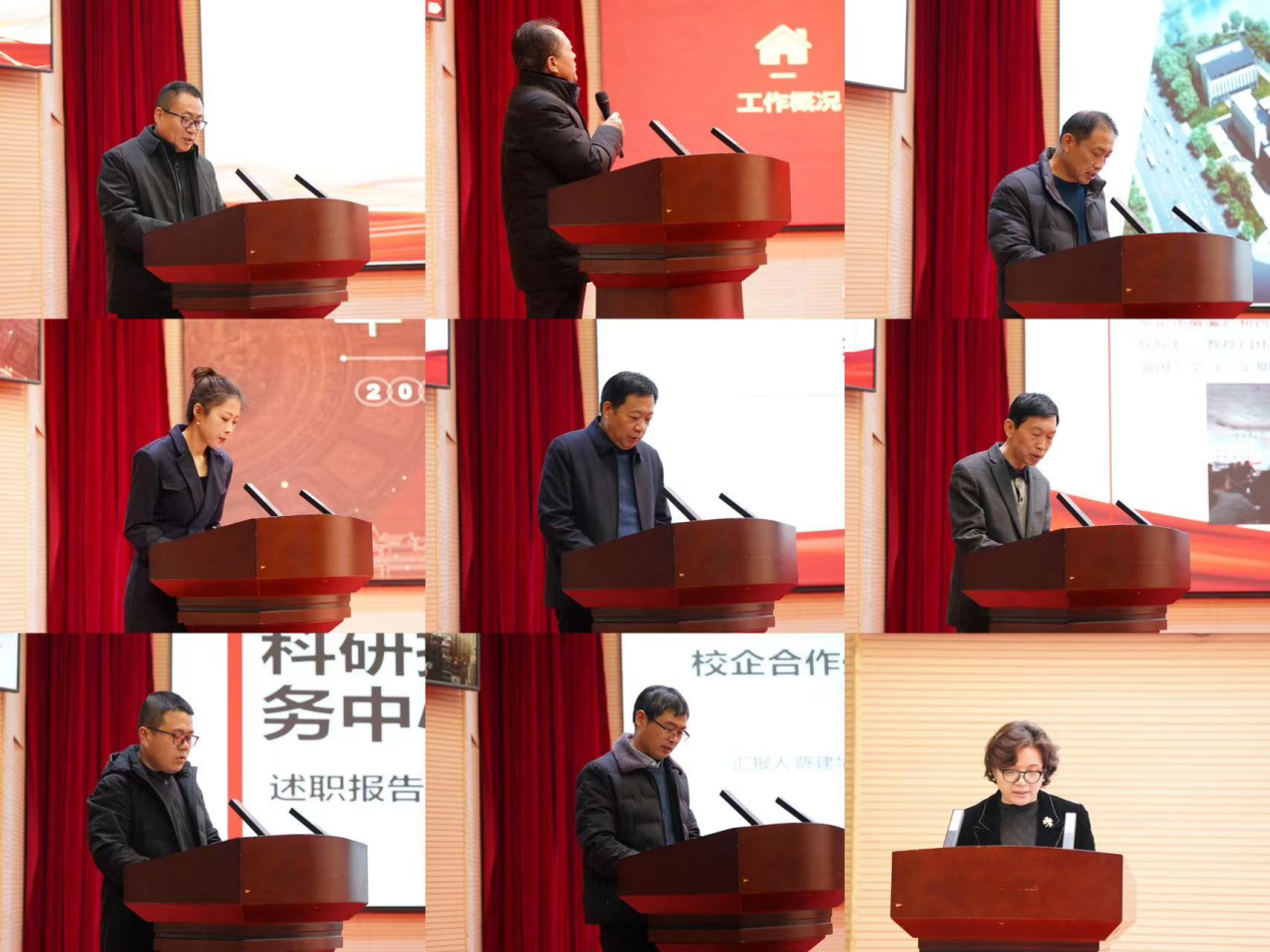 9个系部(院)和23个处室负责人依次上台进行述职。分别对各自部门在过去一年中的创新工作亮点、主要经验成绩、现有问题诊断与改进、下一步工作安排等方面展开述职。凸显了各部门在服务学校发展大局、推进重点任务和加强内部管理等方面的显著成果和经验。
