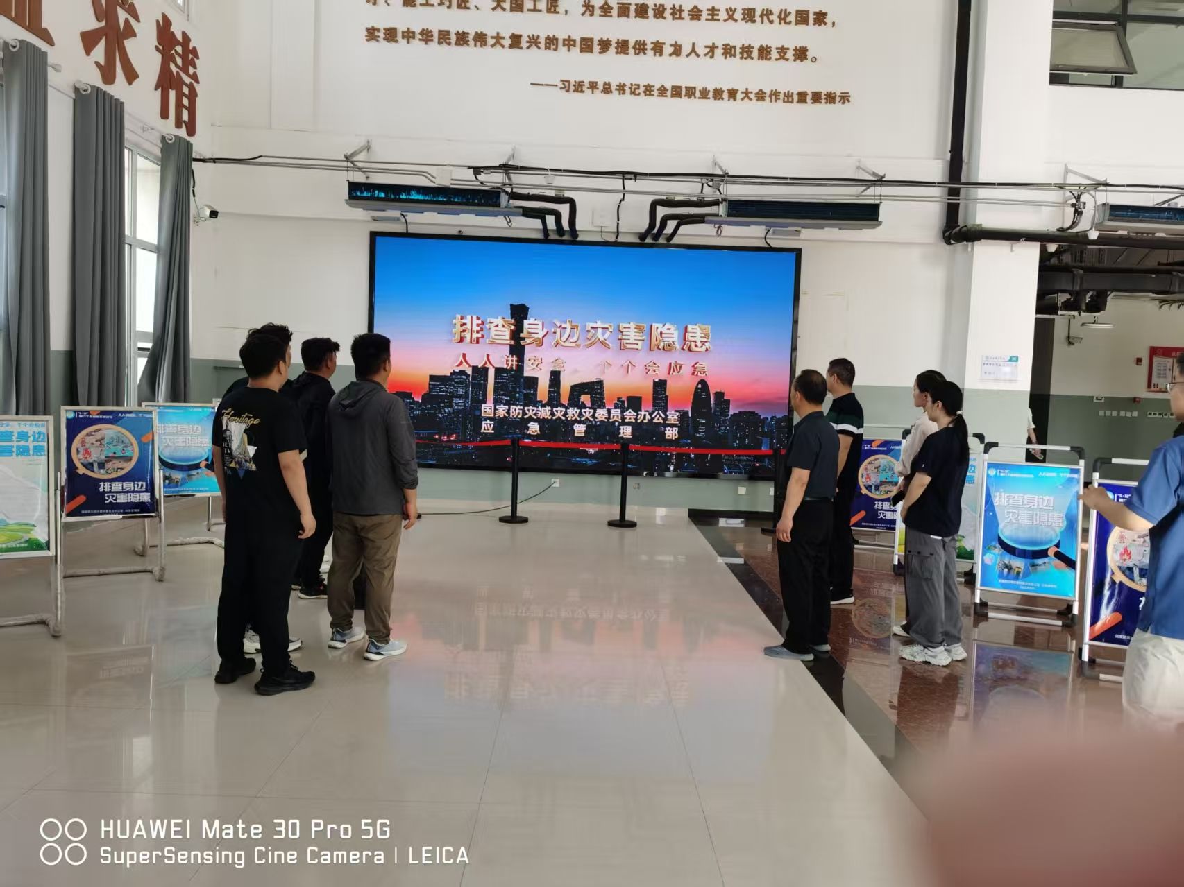 后勤管理处联合蒋震智能制造学院,在教学场所设置流动宣传点,通过发放校园防震应急手宣传页、现场演示三角支撑避险法等方式,直观讲解“伏地、遮挡、手抓牢”的避险要点。同时,利用电子屏循环播放地震应急科普动画。
