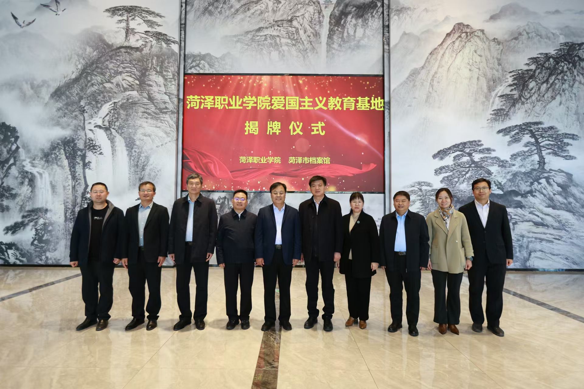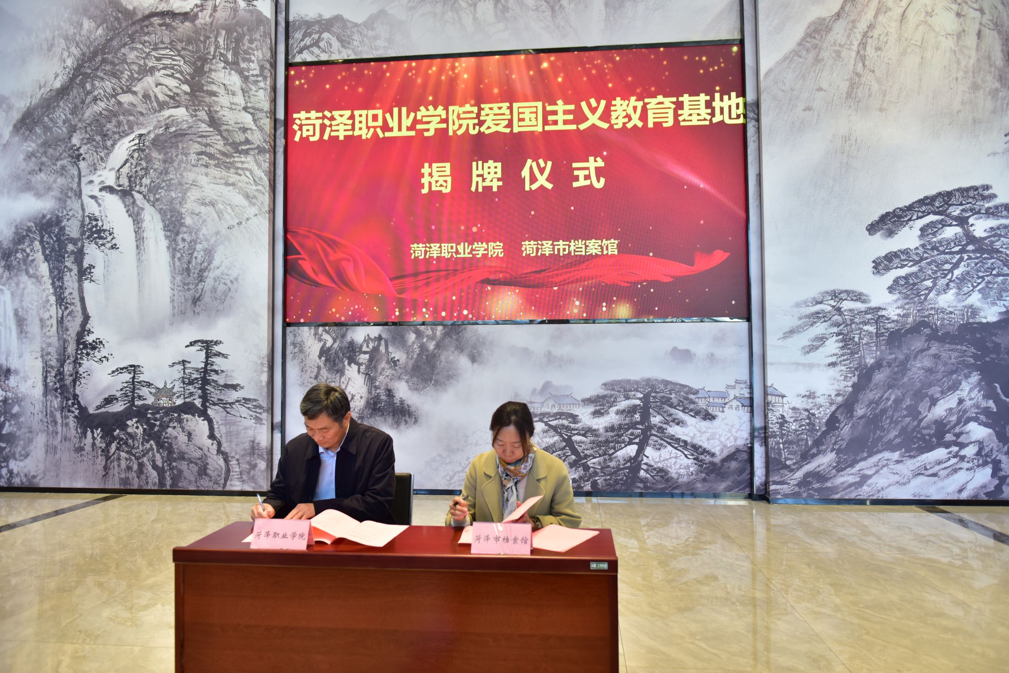 仪式上,张国胜与海燕共同签订了爱国主义教育基地共建协议书。随后,袁宗建与袁红霞共同为“菏泽职业学院爱国主义教育基地”揭牌。