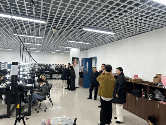 12月4日,安徽华云智科传媒集团有限公司一行到访我校雷泽湖校区,实地考察人物形象设计专业。雷泽湖校区管理办公室主任吴沛、学前教育系党总支书记盛永进陪同参观座谈。城建技工学校副校长贾幸幸参加活动 。