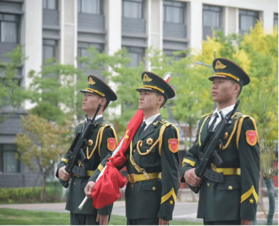 作为爱国主义教育先锋团队,我校国旗护卫队长期肩负日常及重大活动升旗任务,积极参与国防教育宣传,用实际行动诠释青春担当,已成为我校一张闪亮的“名片”。未来,我校将进一步加强国旗护卫队的规范化建设,激励广大青年学子坚定理想信念、厚植家国情怀,在实现中华民族伟大复兴的征程中贡献青春力量。
