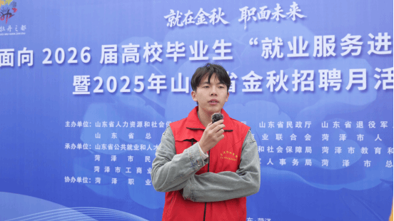 10月15日,面向2026届高校毕业生的“就业服务进校园”暨2025年山东省金秋招聘月活动在我校举办。校团委 “牡丹花开”赛会志愿服务队160余名大学生志愿者全程参与,从场地布置、桌椅搬运到会场服务,以青春志愿红为活动成功举办保驾护航。