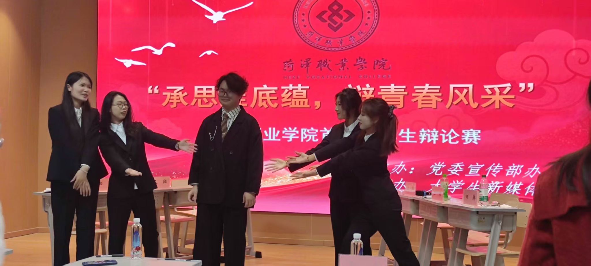 为激发青年学子的思辨热情,提升逻辑思维与语言表达能力, 12月25日,菏泽职业学院“承思维底蕴,变青春风采”首届辩论赛圆满落幕,由姜坤、纪玉婷、林一硕、冯昭涵、王袁五位同学组成的“我说啥都队”队伍代表经济管理系参加比赛。
