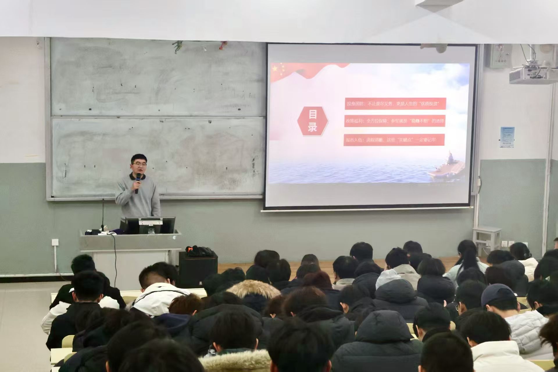 为响应国家国防建设号召,激发青年学子参军报国热情,12月25日,经济管理系于8300教室举办征兵宣讲及动员大会。系党总支书记王为涛主讲,师生代表参会。