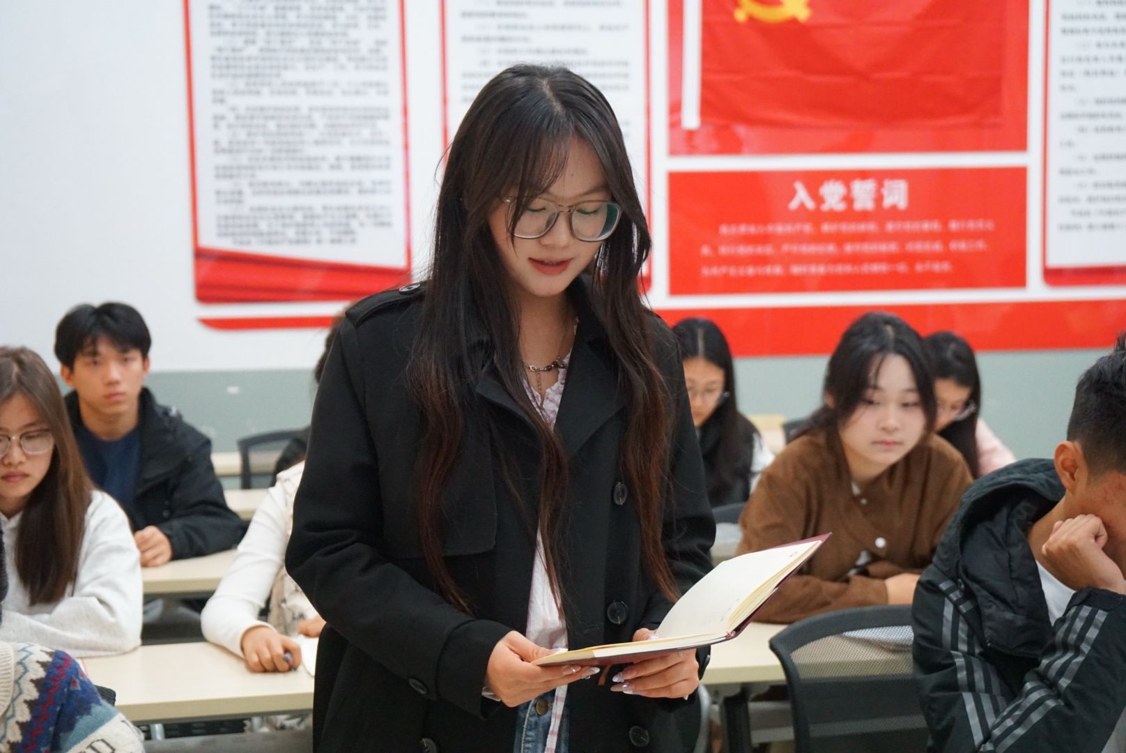 活动伊始,学生党支部书记徐阳昭通过视频与案例,深入解析了报国强国的时代内涵与“挺膺担当”的精神实质。现场设置了“强国使命我来答”互动环节,学生们踊跃参与,深化认知;在“我的奋斗担当”分享环节,同学们积极发言,畅谈在专业学习与志愿服务中践行使命的规划。