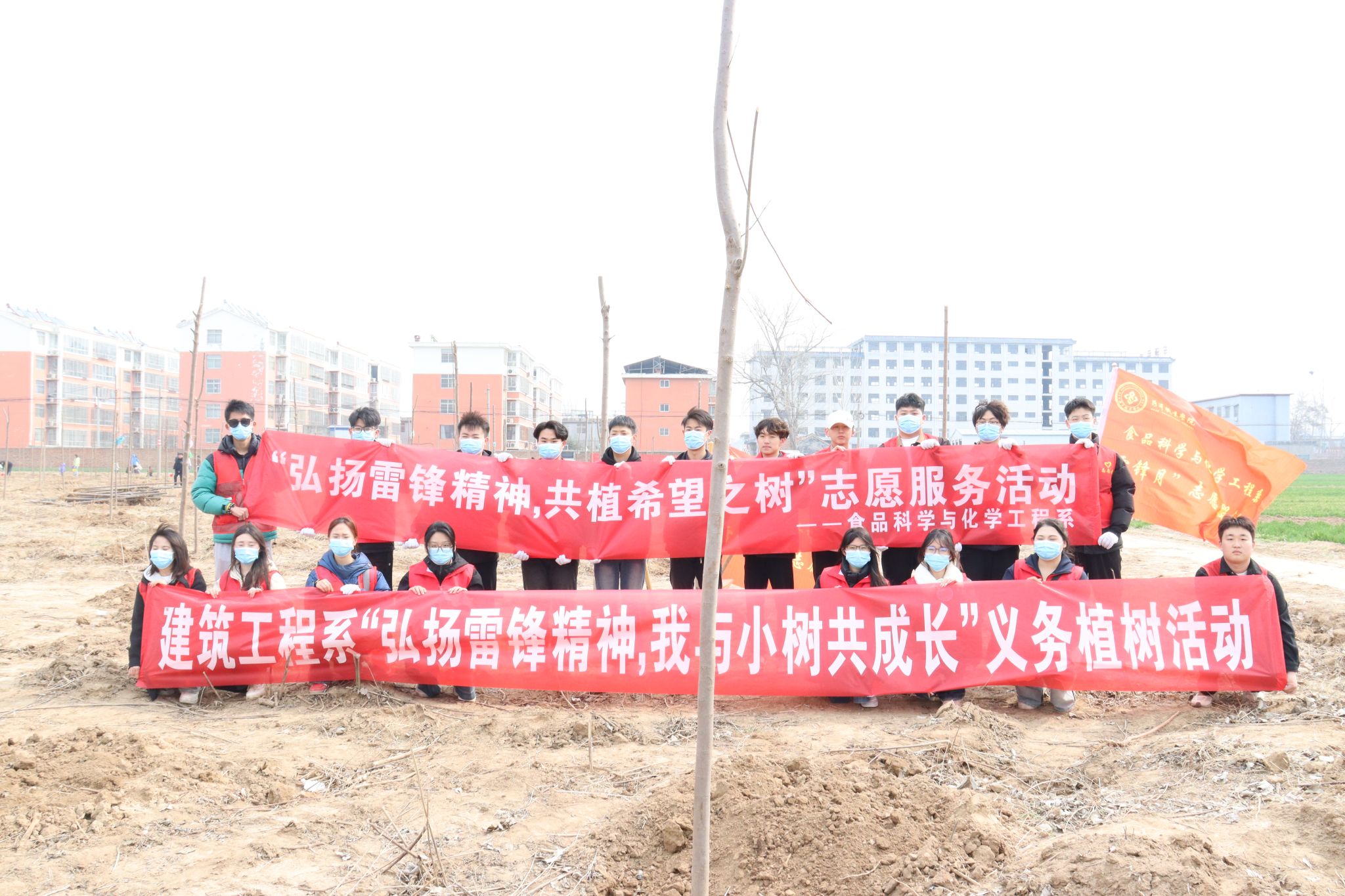 又是一年春光好,又到一年植绿时,为积极相应国家号召,推动生态文明建设,坚持“党建带团建”,充分发挥团组织的桥梁纽带作用,值此雷锋月之际,建筑与化工学院学生党支部于3月15日带领建筑工程系和食品科学与化学工程系青年志愿者来到菏泽市牡丹区小留镇参与开展“建设生态菏泽,推动绿色发展”公益植树活动。