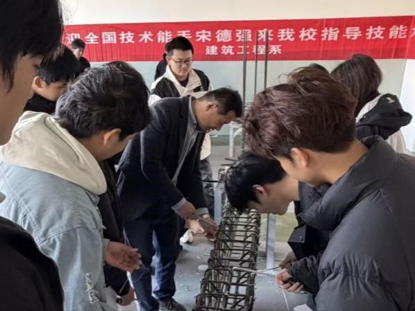 两位客座教授分别走进校本部5号实训楼钢筋工实操区和雷泽湖校区手工木工实训室,聚焦技能大赛核心要点与实训关键环节,通过现场示范、精准点评、答疑解惑,为师生传授前沿实操技巧与参赛经验。