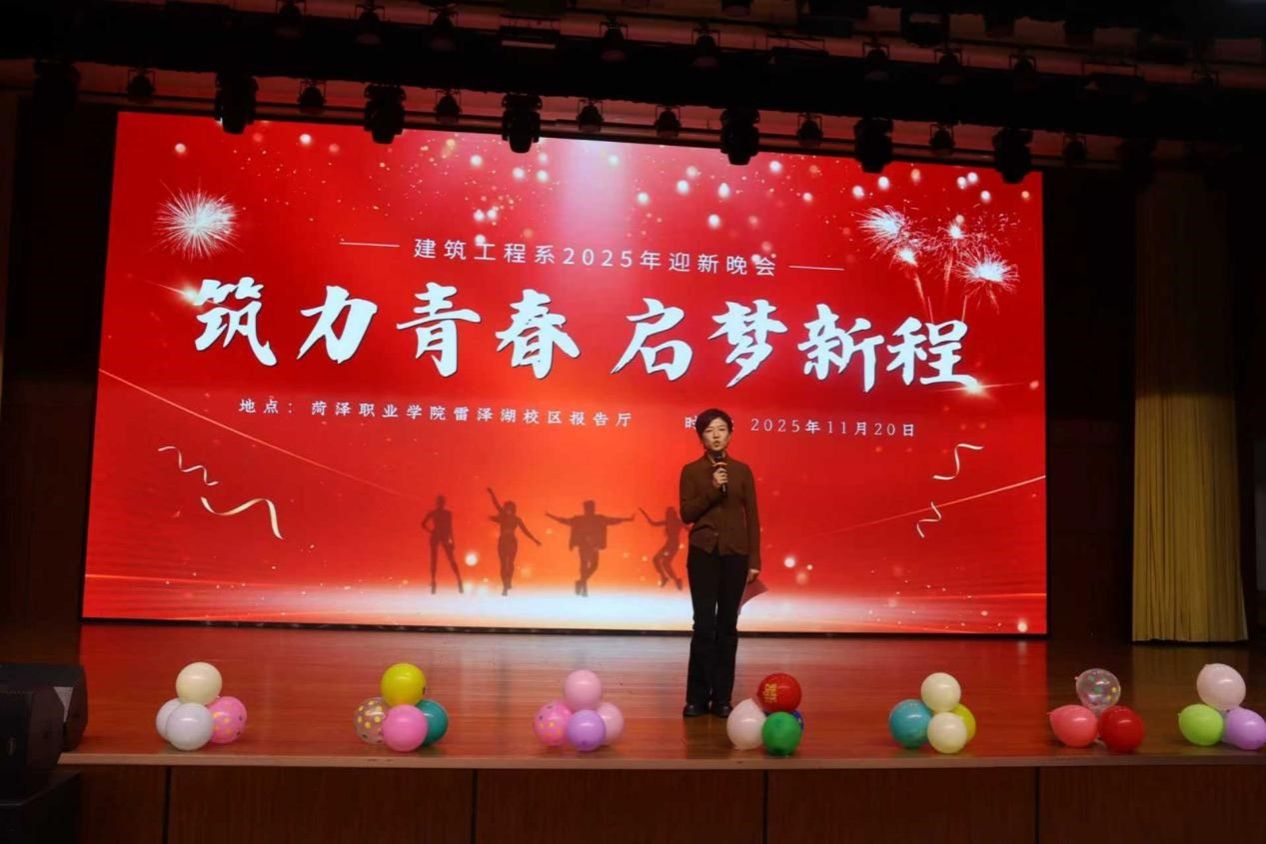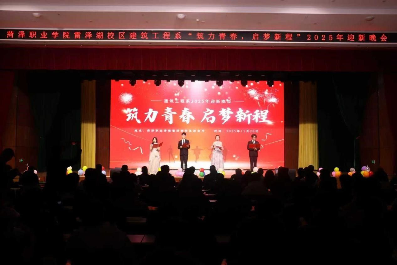 金风送爽启新程,青春逐梦绽芳华。为欢迎2025级新生融入建筑工程系大家庭,帮助新生快速适应大学生活,厚植校园文化底蕴,搭建才艺展示与情感联结的平台,建筑工程系于2025年11月20日19点在菏泽职业学院雷泽湖校区报告厅隆重举办“筑力青春,启梦新程”主题迎新晚会。整场晚会灯光璀璨、气氛热烈,师生齐聚一堂,共赴这场青春盛宴。