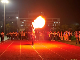这场音乐节不止是一场演出,更是校园文化与青春力量的碰撞。正如主持人所说:“青春是逐梦的底色,音乐是筑梦的旋律”,从开场便充满惊喜:韩耀林、刘志晨、李世豪、孙善良四位同学带来的《喷火+舞刀》表演,刀光与火焰交织,打破传统节目框架,用强烈的视觉冲击瞬间点燃全场热情;随后《我怀念的》旋律响起,主唱爆发力十足的嗓音戳中青春记忆,台下自发的大合唱此起彼伏;《手心的蔷薇》男女对唱更显细腻与热血,高音炸裂的瞬间更将现场推向高潮,荧光棒挥舞成一片流动的光海。