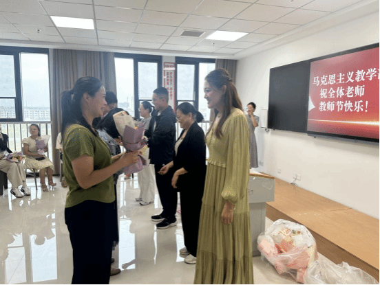 为贯彻落实习近平总书记关于加强教师队伍建设的重要论述,在马克思主义教学部营造尊师重教的良好氛围,9月10日,我部举办第41个教师节庆祝活动。部门教师欢聚一堂,以鲜花寄敬意,向奋战在教学一线的老师们致以最崇高的敬意。张敏主任向教师们致以节日的祝福,并对我部教师取得的成绩给予了充分肯定,勉励教师们深入学习贯彻习近平总书记关于加强教师队伍建设的重要论述,大力弘扬教育家精神,担当作为,比学赶超,推动我校思政课创新发展。
