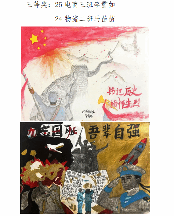 活动得到同学们积极响应,经潜心构思与精心打磨,已圆满落幕。创作中,学子们或用细腻笔触勾勒历史瞬间,传递对和平的珍视;或用真挚文字抒发爱国情怀,诠释青年的责任与担当,每一处细节都彰显着创作者的赤子之心与家国情怀。