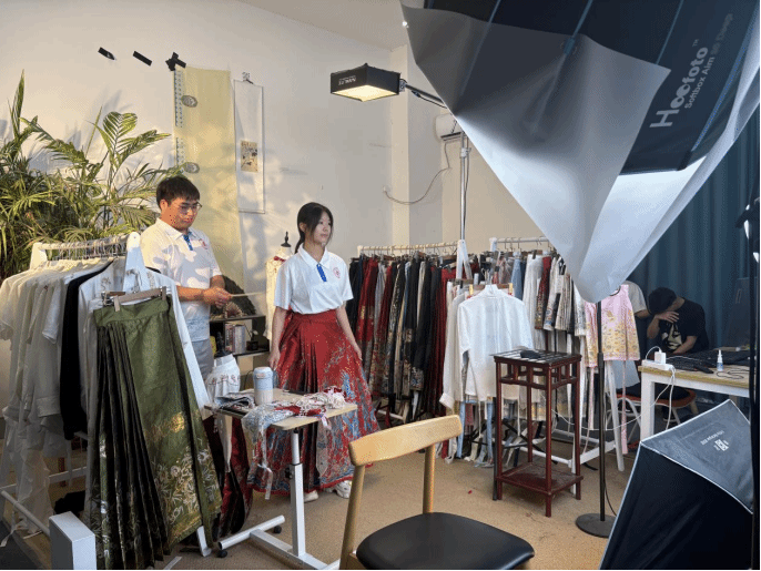 在一家家汉服工坊里,匠人们专注地裁剪、缝制、刺绣,他们手中的汉服不仅是一件服饰,更是承载着中华礼仪文化的艺术品。团队成员与匠人面对面交流,聆听每一件汉服诞生的故事,了解传统汉服制作工艺的复杂与精细,深刻体会到匠人对传统文化的坚守与热爱。通过走访,团队成员对曹县汉服产业的规模、发展现状以及市场需求有了直观而全面的认识,为后续活动开展奠定了坚实基础。