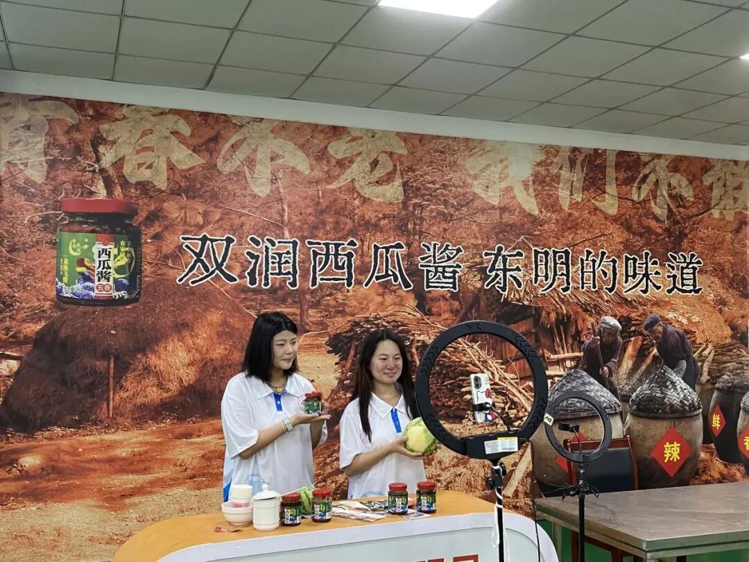 实践首站,同学们来到东明县元合绿色采摘园。在大棚内,同学们观察西瓜长势,与瓜农交流,了解西瓜从选种、育苗到田间管理的全过程,感受农业生产的辛劳与智慧。同学们还体验了当地特色西瓜酱的制作。同时,充分发挥网络直播专业优势,通过直播平台生动介绍园内优质西瓜及西瓜酱产品,热情推介东明农产品,积极拓宽线上宣传渠道。