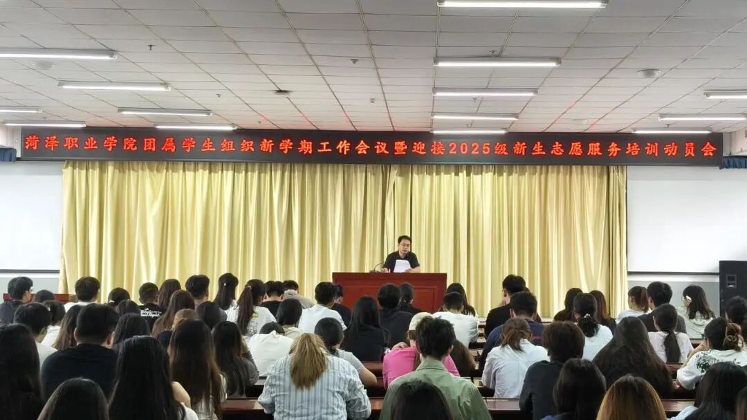 夏末的余温尚未褪去,新学期的序章已然奏响。为统筹推进团属学生组织新学期各项工作,凝聚学生骨干力量,同时扎实做好2025级新生入学志愿服务准备,确保新生顺利开启大学生活,9月4日菏泽职业学院团属学生组织新学期工作会议暨 2025 级新生志愿服务培训动员会顺利召开。校团委全体人员及团属学生组织全体骨干、新生志愿服务队成员共同参会。