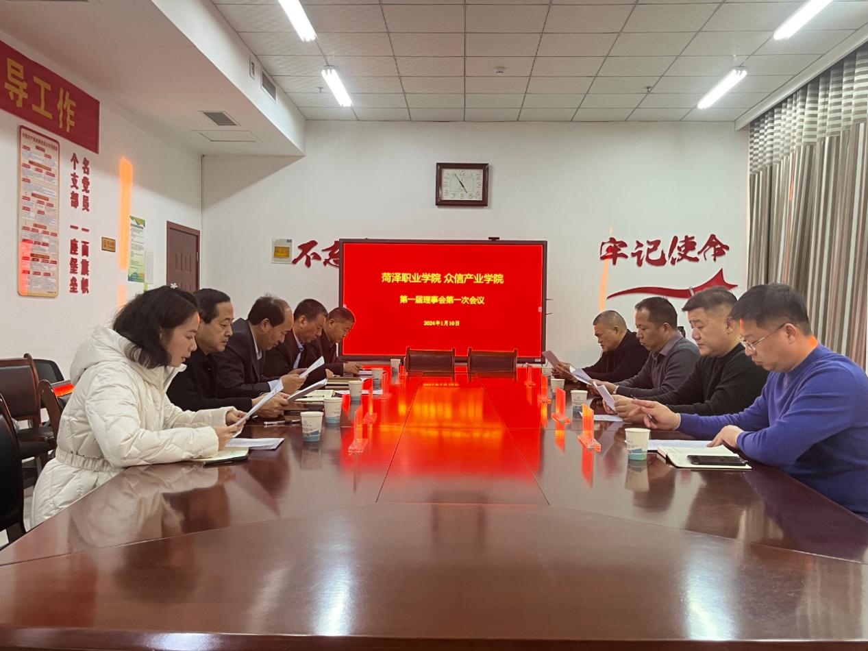 2024年1月10日下午,“菏泽职业学院众信产业学院”第一届理事会成立大会暨第一次会议在菏泽职业学院907会议室召开。