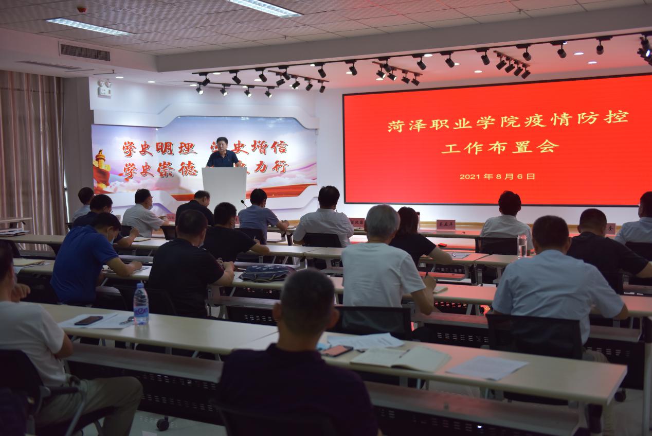 8月6日下午,菏泽职业学院组织参加全省学校疫情防控工作视频会议。会后召开疫情防控工作布置会,学院领导班子成员和各处室、系部主要负责人以及疫情防控工作小组有关人员参加会议。