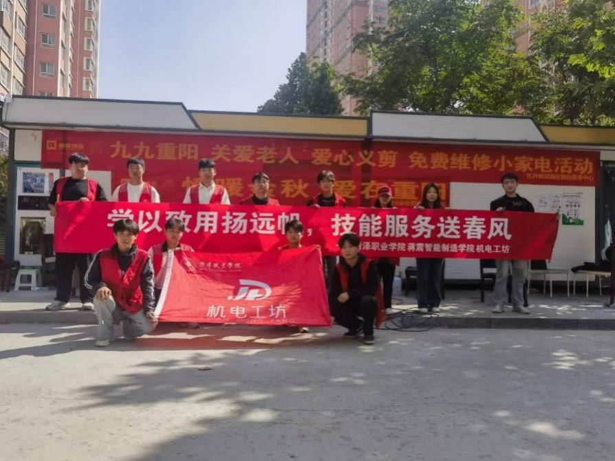 为弘扬中华民族尊老、敬老的传统美德,传递社会正能量,蒋震智能制造学院机电工坊于10月11日上午在牡丹新城小区针对社区老人开展“爱在重阳,情暖社区”电器维修志愿服务活动。