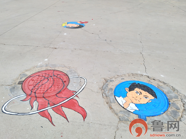 近日,菏泽职业学院校园里的井盖成了一道亮丽的风景线,该校信息工程系2017级动漫班的学生用画笔和颜料在井盖上进行了一场以“井上添花”为主题的涂鸦行动,一个个生动的卡通形象,被涂画在菏泽职业学院内的井盖上,一眼望去仿佛进入了卡通漫画主题街。