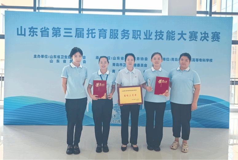 8 月 27 日,山东省第三届托育服务职业技能大赛在青岛幼儿师范高等专科学校落幕。本次大赛由省卫生健康委、省总工会主办,汇聚了全省16地市选拔的64名优秀选手,我校教师高慧慧、李懂分别获得保育师赛项二、三等奖,为菏泽市赢得团体三等奖。 此次赛事成绩的取得,既是对参赛教师个人专业能力的高度认可,更是学校深化托育服务专业建设、推进 “岗课赛证” 融合育人的重要成果。近年来,我校聚焦托育服务这一民生刚需领域,...