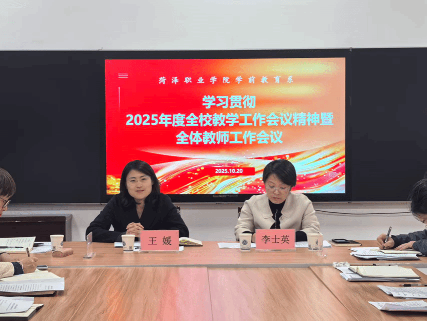 10月20日下午,学前教育系召开全体教师会议,旨在深入贯彻全校教学工作会议精神。校党委委员、组织部部长王媛出席会议并讲话,会议由学前教育系主任李士英主持,全体教师参加会议。